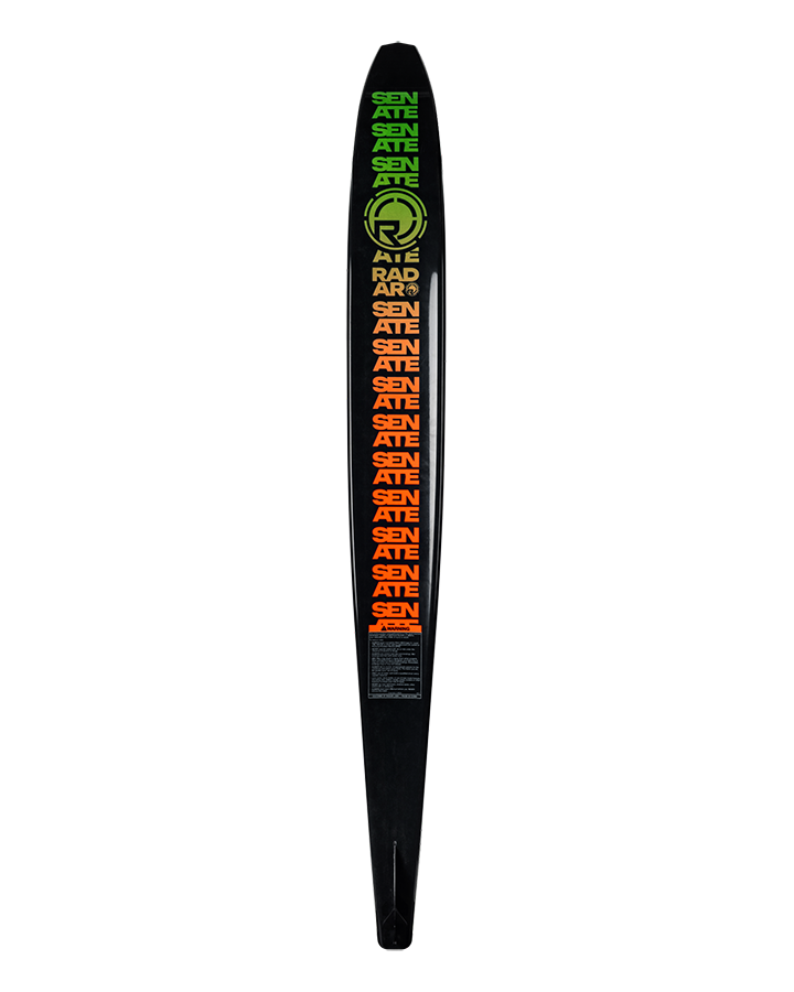 The Senate series pours fuel on your slalom ski fire. Proudly, it is the most widely heralded, highly regarded shape in our line, simply because it works so well across a wide spectrum of skiers. We start with our new Vapor shape and mindfully add two tenths of an inch in extra width between the tunnel and the edge bevel. As opposed to simply scaling the ski wider, this keeps the active wet surface the same as the Vapor, meaning it's going to turn and grip like a Vapor does. Lightning fast where it needs to be and controlled through the turn, we have found the ideal surface area and shape for flat out performance at slightly slower speeds. From the seasoned veteran looking to get back to their prime, to the 34 MPH competitor looking to conquer new line lengths, the Senate Series has a model that will have you rethinking the limits of your personal waterski goals.