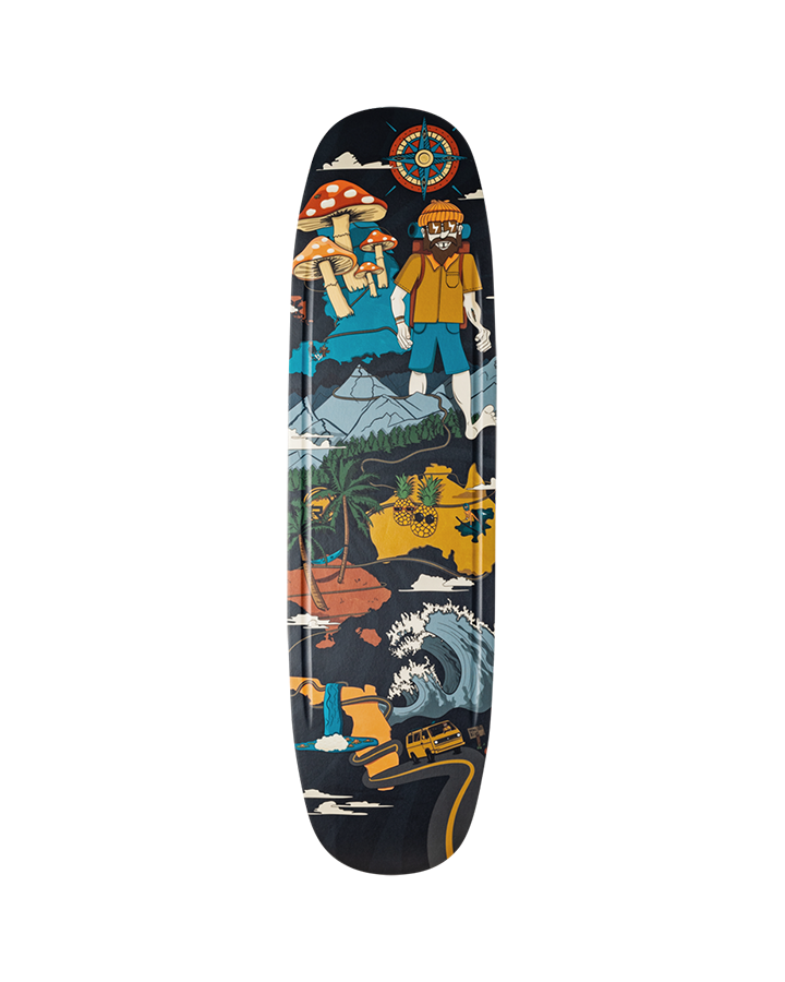 With every passing season we are more down with the Joel Poland Method. Our robotic ninja from years past is now as in love with the journey as he ever was with the destination. From trekking New Zealand and winning events in Australia to surfing Bali and skiing the waters of Chile, Joel is stacking titles, breaking records and cultivating experiences along the way. Joel-inspired art on the Matt Rini-designed Graviton. Win-win combo for sure.